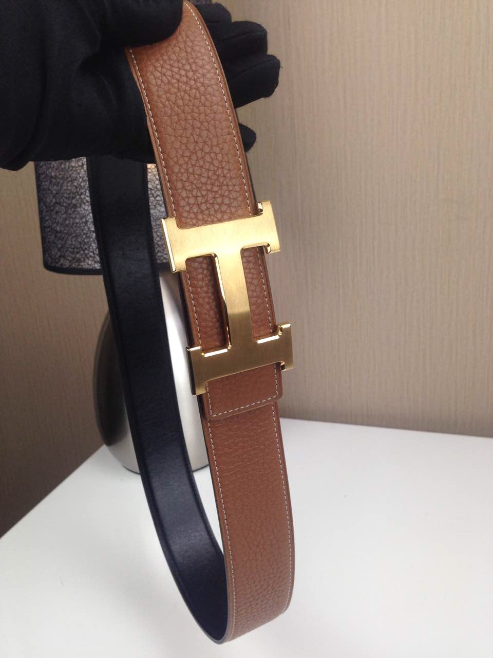 Hermes Litchi grain Brown and black H buckle 3.8CM wide