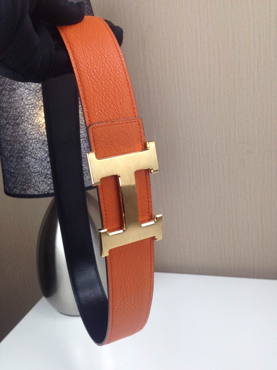 Hermes Litchi grain Orange and black H buckle 3.8CM wide