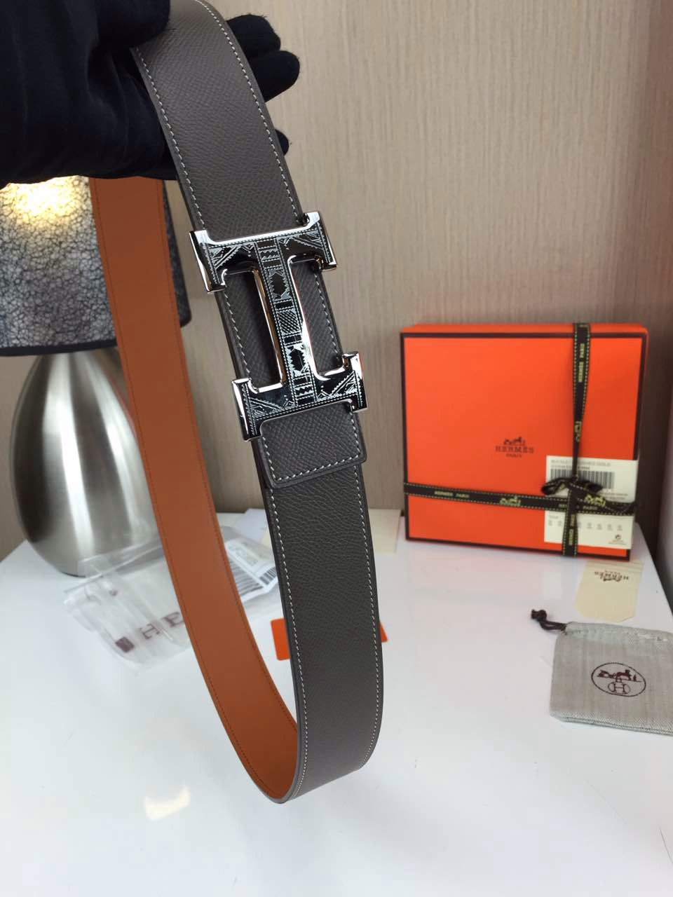 Hermes Men’s Carved buckle Khaki and grey 3.8CM wide