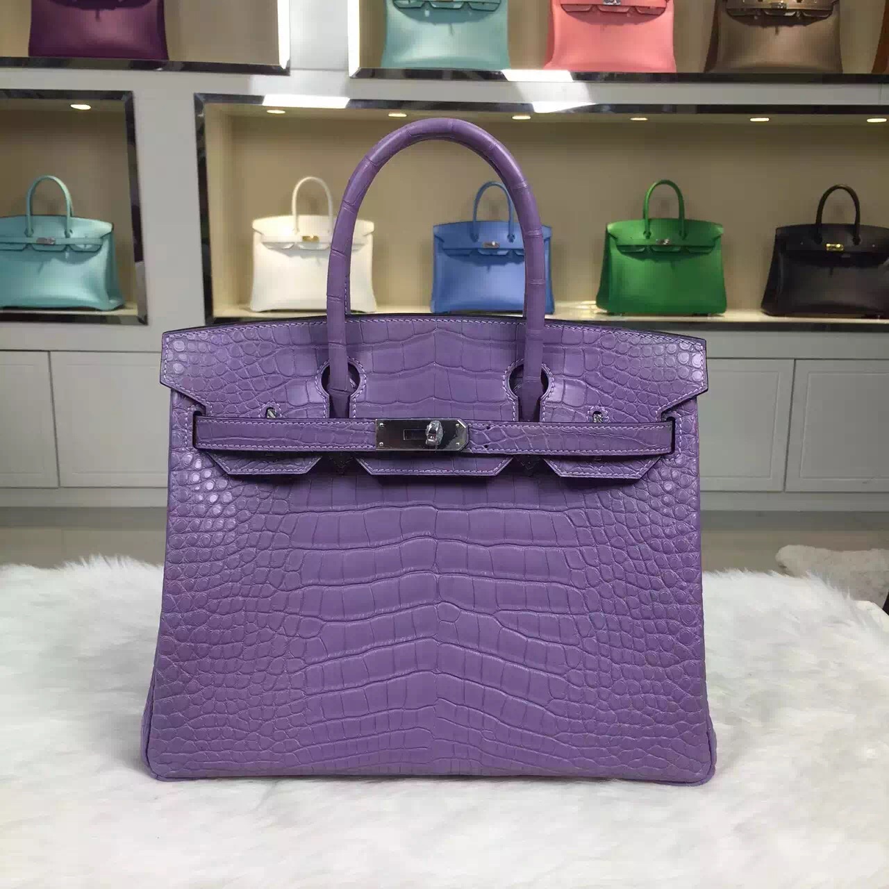 Brand: Hermes; Style: Birkin Bag 30cm; Material: Crocodile Leather([HCP] original leather);Color: Lavender Purple; Hardware: gold,silver;  Accessories: Padlock and keys, dust bag.Function:tote bag.