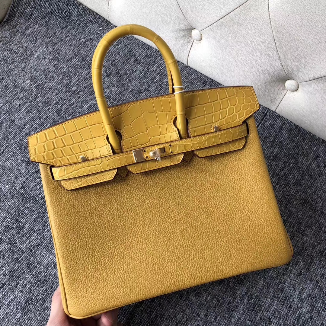 Hermes Birkin Bag 25CM Ambre Crocodile/Togo Leather Gold Hardware