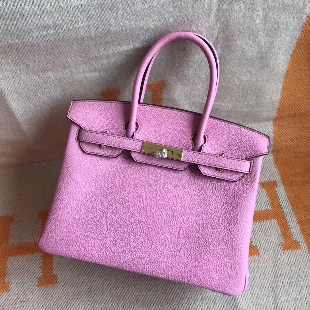 Brand: Hermes; Style: Birkin Bag; Material: Togo Calfskin Leather;Color: 5P Rose Sakura; Size:30cm; Hardware: Gold; Accessories: Padlock and Keys, Dust Bag.Function:Tote Bag.