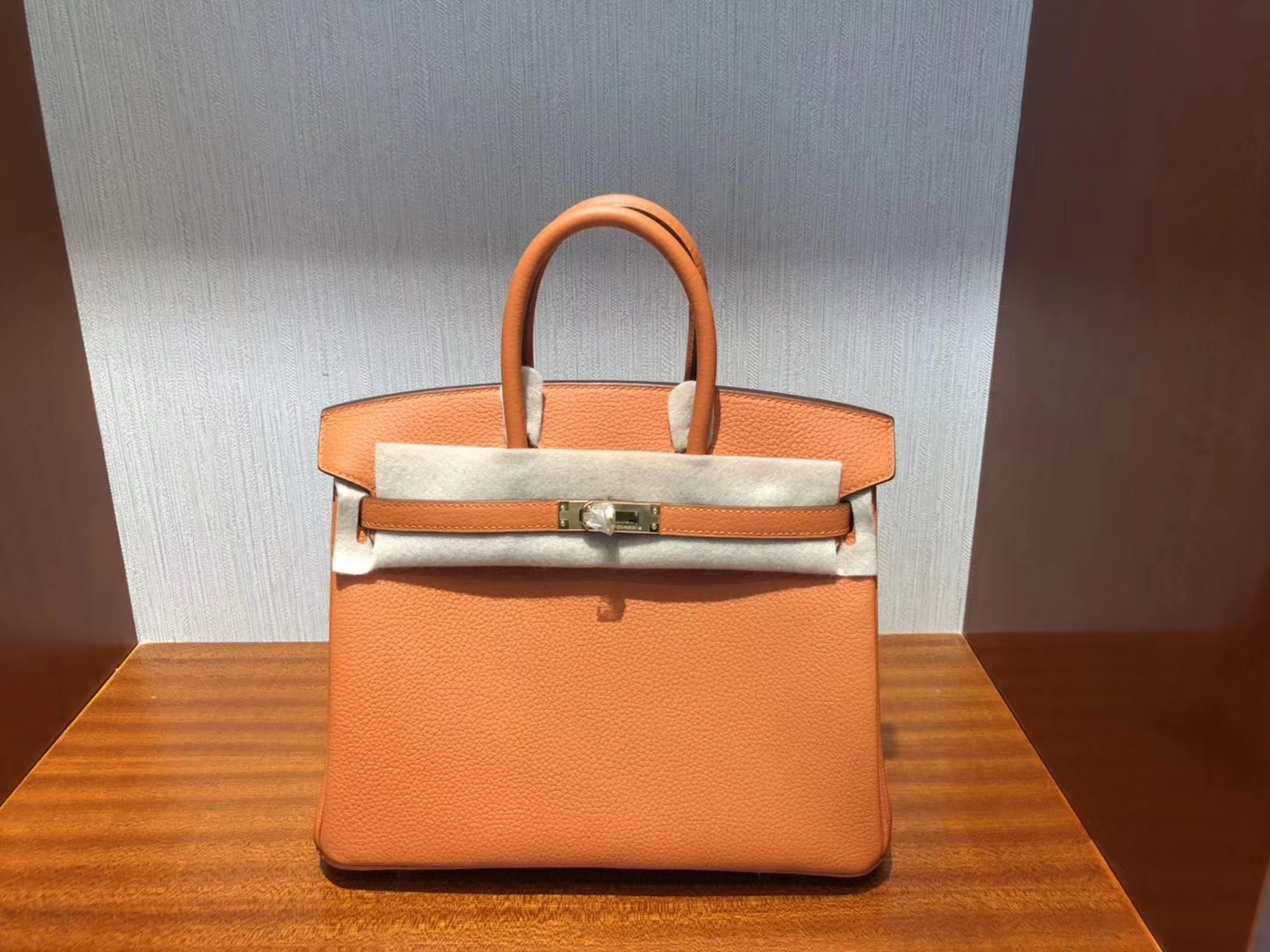 Brand: Hermes; Style: Birkin Bag; Material:Togo Calf Leather;Color:93 Orange; Size:25cm; Hardware:Gold;Package:Complete Package;Function:Tote Bag.