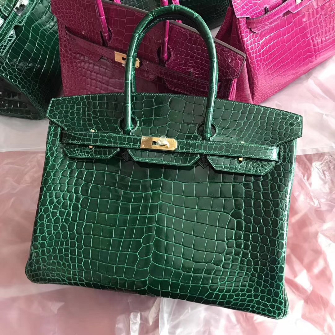 Hermes CK67 Vert Fonce Shiny Crocodile Birkin 35CM Bag Gold Hardware