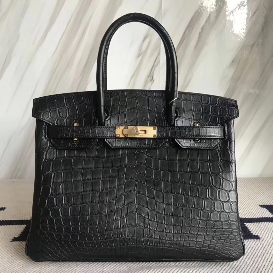 Brand: Hermes; Style: Birkin Bag; Material:Crocodile Matt Leather;Color:CK89 Black; Size:30cm; Hardware:Gold;Accessories: Padlock fand Keys, Dust Bag.Function:Tote Bag.