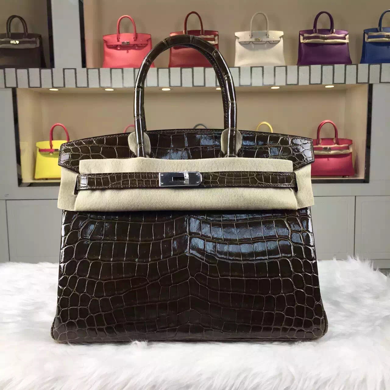 Hermes HCP Crocodile Shiny Leather Birkin Bag 30cm in 6H Olive Green