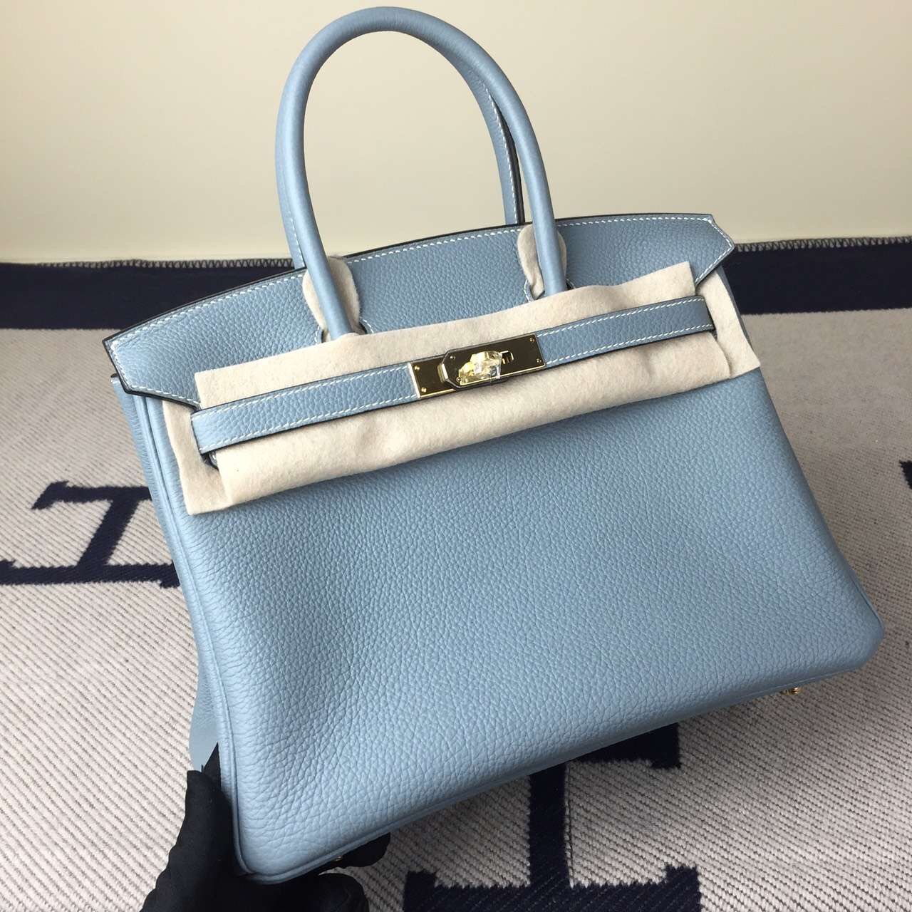 Brand: Hermes; Style: Birkin Bag 30cm; Material: Togo Calfskin Leather;Color: J7 Blue Lin; Hardware: silver/gold; Accessories: Padlock and keys,dust bag.Function:tote bag.