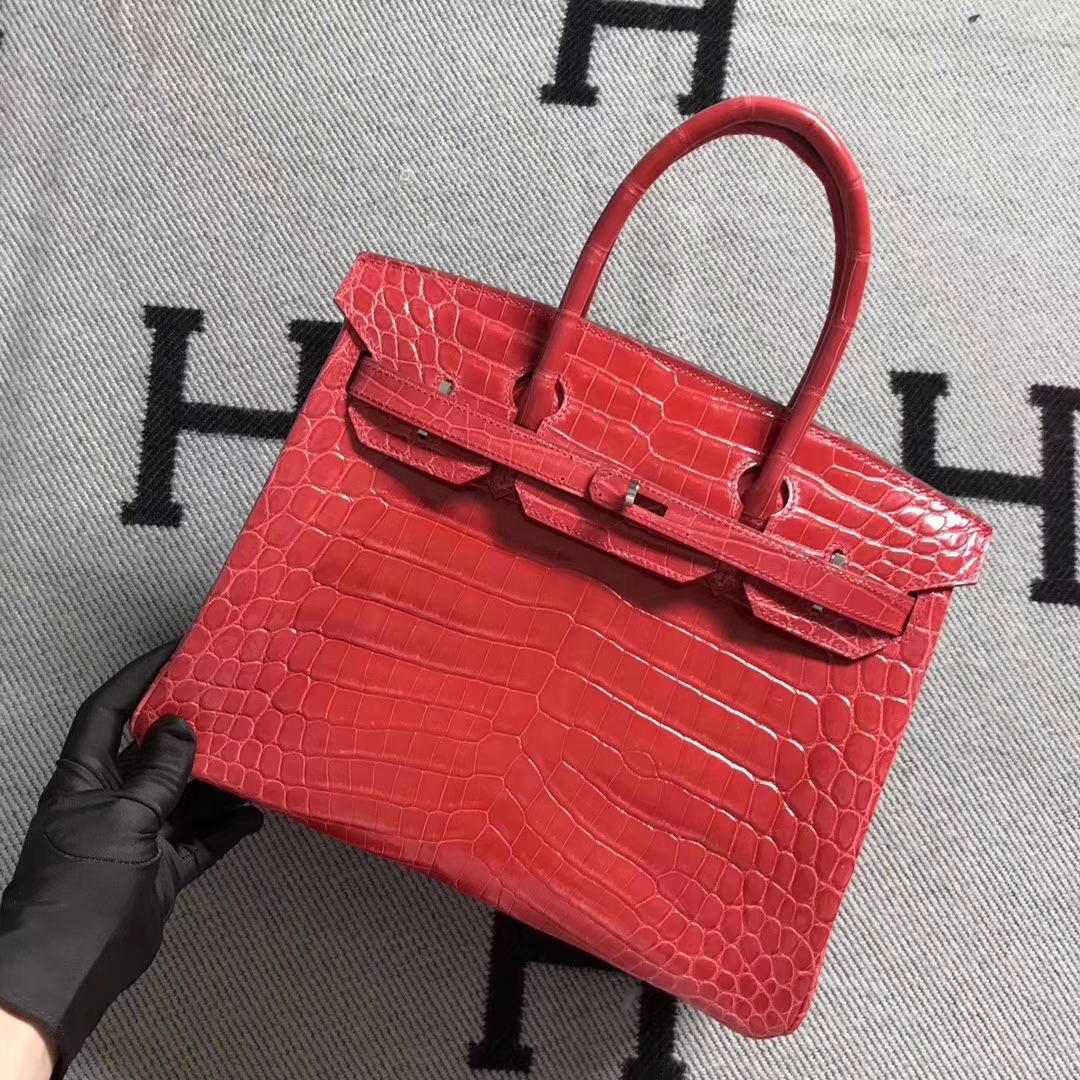 Brand: Hermes; Style: Birkin Bag; Material: Niloticus Shiny Crocodile Leather;Color:Rose Peach; Size:30cm; Hardware: Gold; Accessories: Padlock and Keys, Dust Bag.Function:Tote Bag.