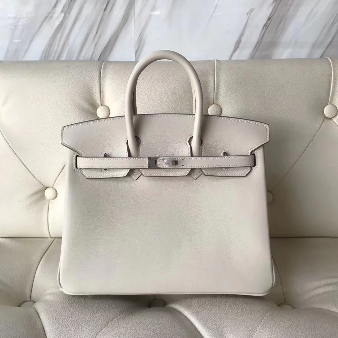 Hermes Swift Calf Birkin 25CM Bag in CK10 Craie Silver Hardware