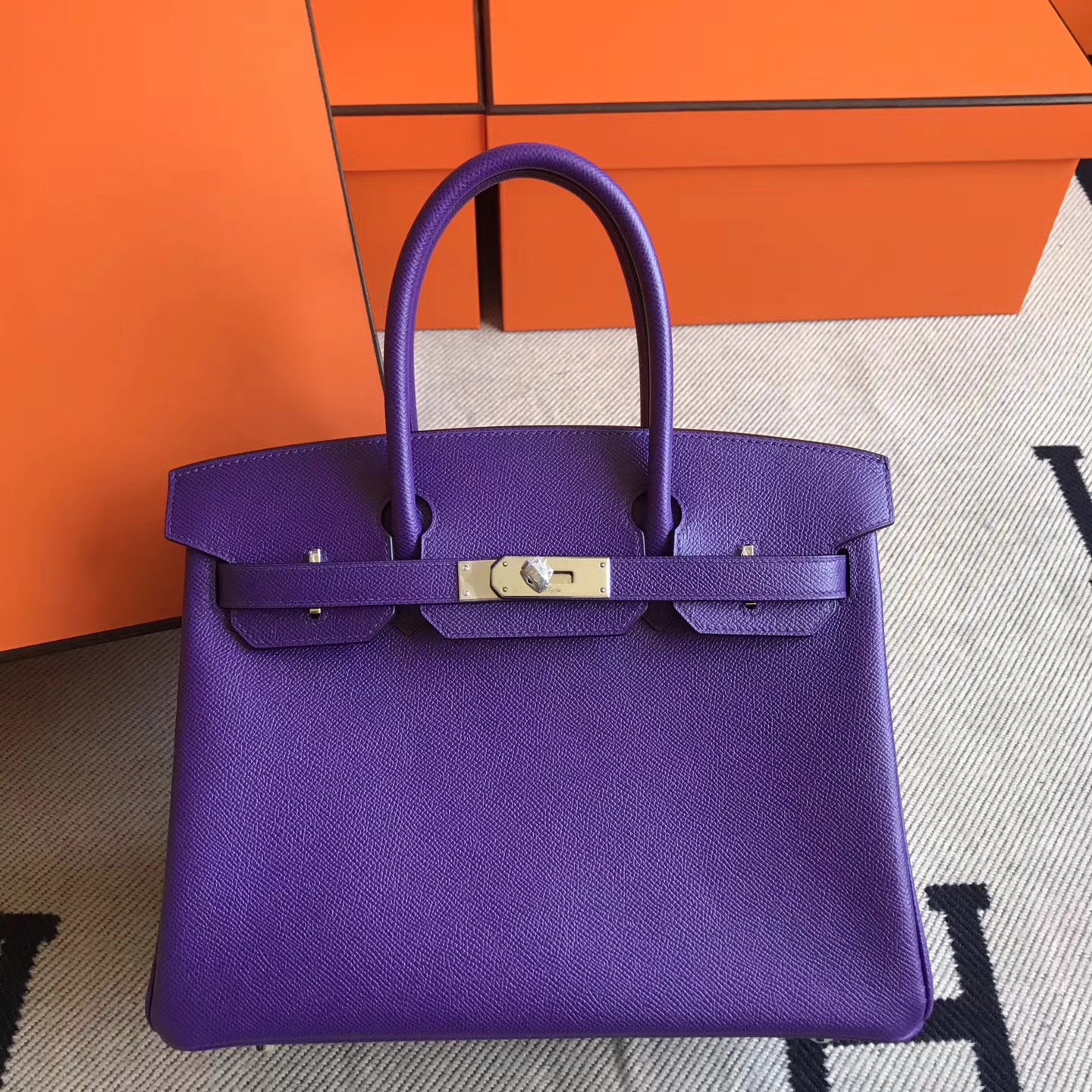 Brand: Hermes; Style: Birkin Bag; Material: Epsom Calfskin Leather;Color:9W Violet; Size:30cm; Hardware: Silver; Accessories: Padlock and keys, dust bag.Function:tote bag.