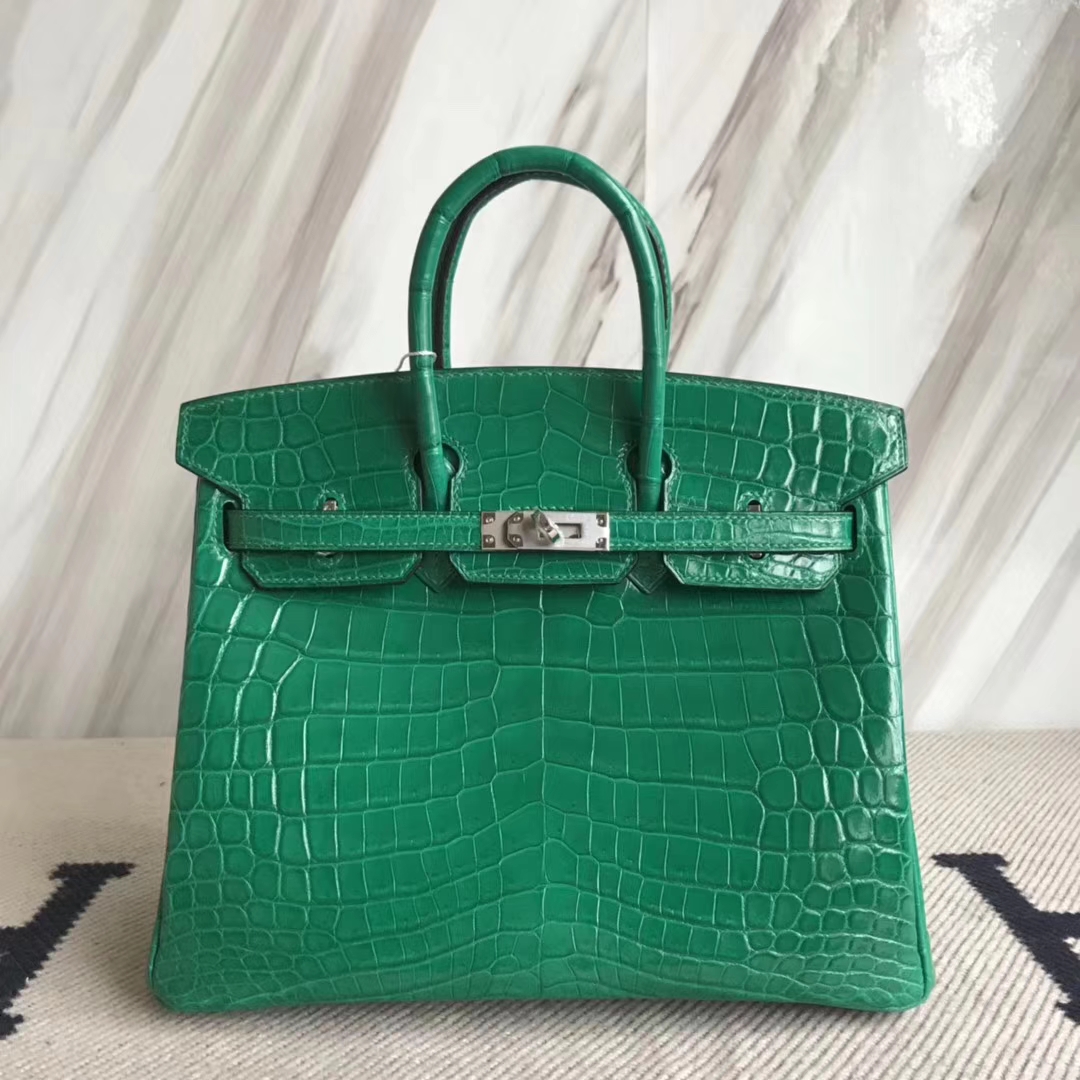 Hermes Crocodile Shiny Birkin Bag 25CM in 6Q Emerald Green Silver Hardware