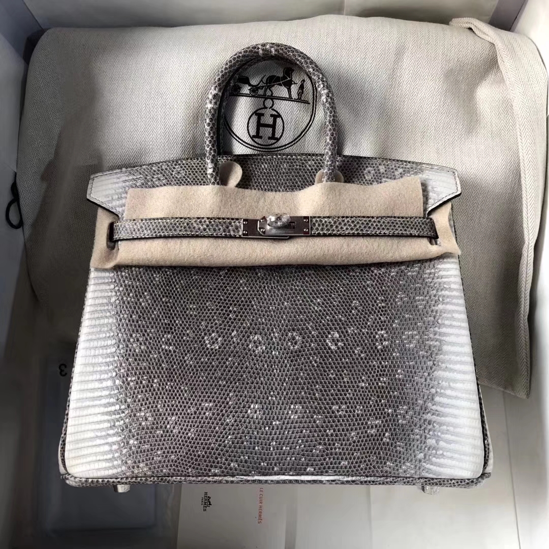 Brand: Hermes; Style: Birkin Bag; Material:Lizard Leather;Color:01 Nature Color; Size:25cm; Hardware:Silver;Accessories: Padlock fand Keys, Dust Bag.Function:Tote Bag.