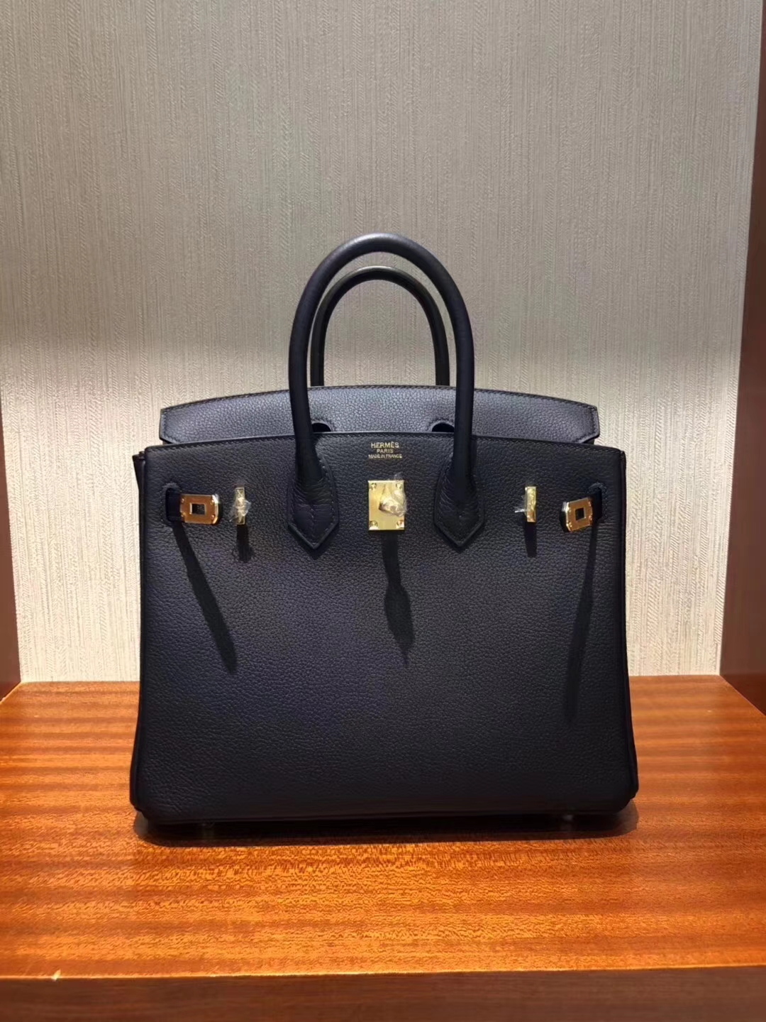 Brand: Hermes; Style: Birkin Bag; Material:Togo Calf Leather;Color:2Z Midnight Blue; Size:25cm; Hardware:Gold/Silver;Accessories: Padlock fand Keys, Dust Bag.Function:Tote Bag.