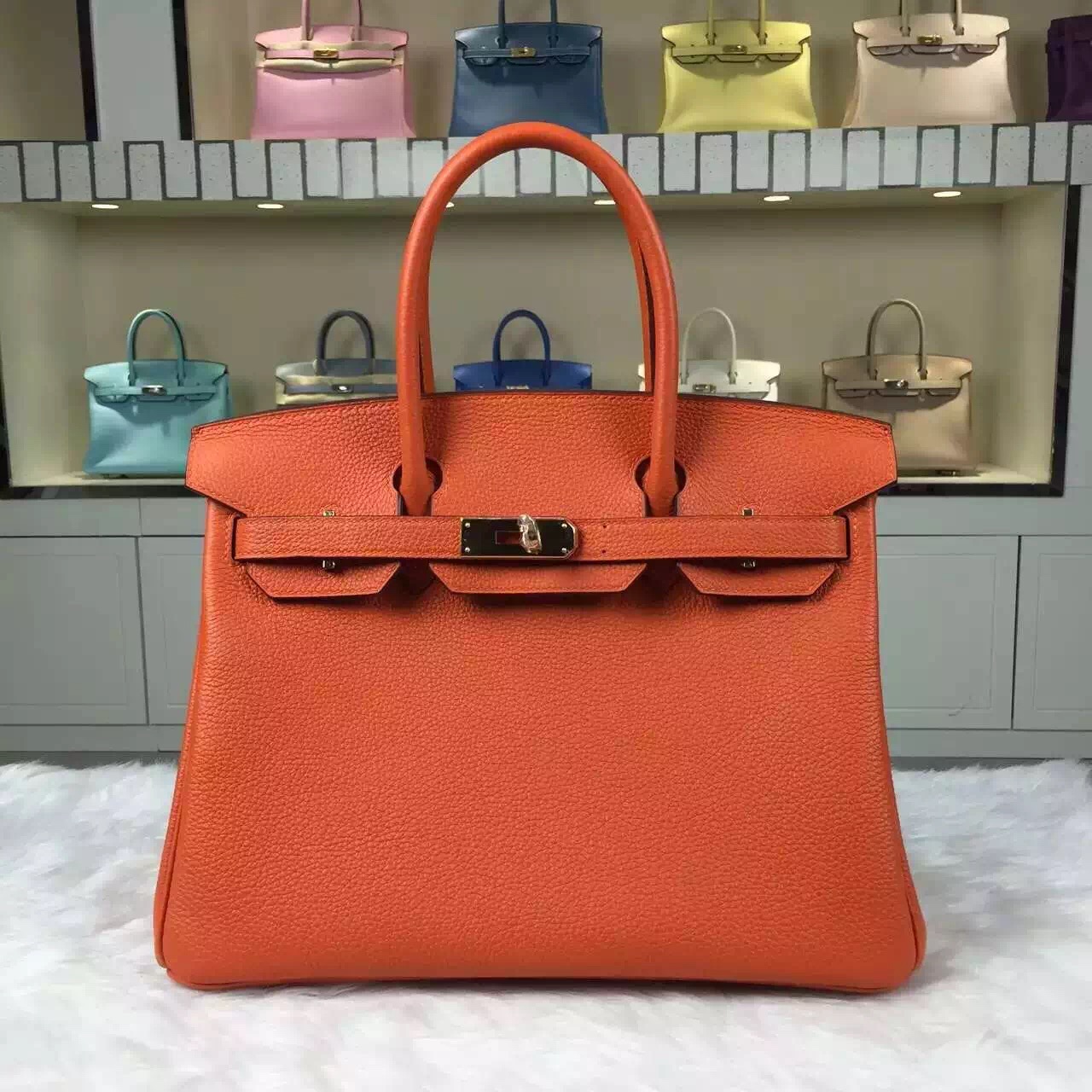 Brand: Hermes; Style: Birkin Bag30cm; Material: Togo Calfskin Leather;Color: orange ; Hardware: Silver/Gold; Accessories: Padlock and keys, dust bag.Function:tote bag.