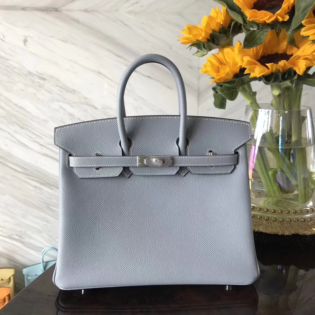 Brand: Hermes; Style: Birkin Bag; Material:Epsom Calf Leather;Color:J7 Blue Lin; Size:25cm; Hardware:Silver;Accessories: Padlock fand Keys, Dust Bag.Function:Tote Bag.