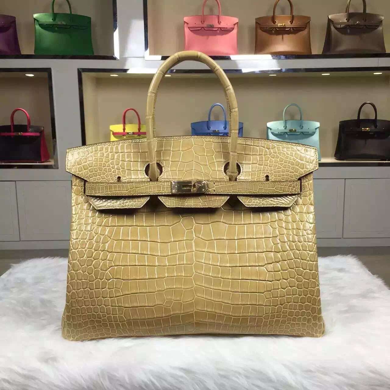 Hand Stitching Hermes Beige HCP Crocodile Shiny Leather Birkin Bag 35CM