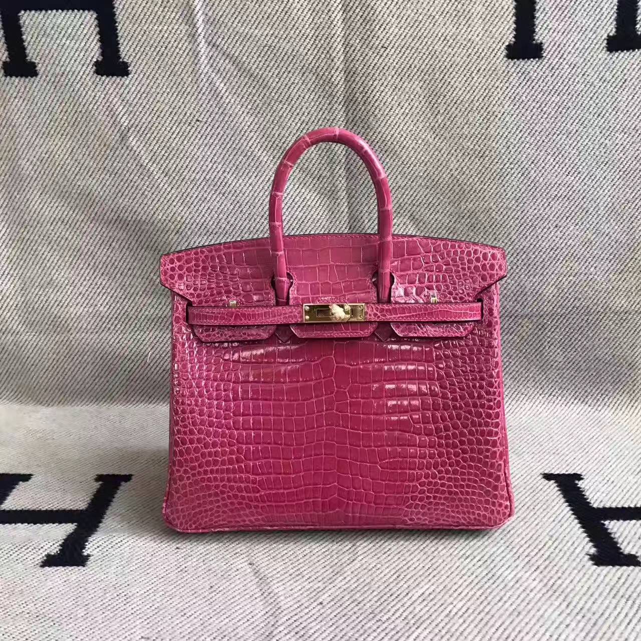 Hand Stitching Hermes Birkin 25cm E5 Rose Tyrien Crocodile Shiny Leather