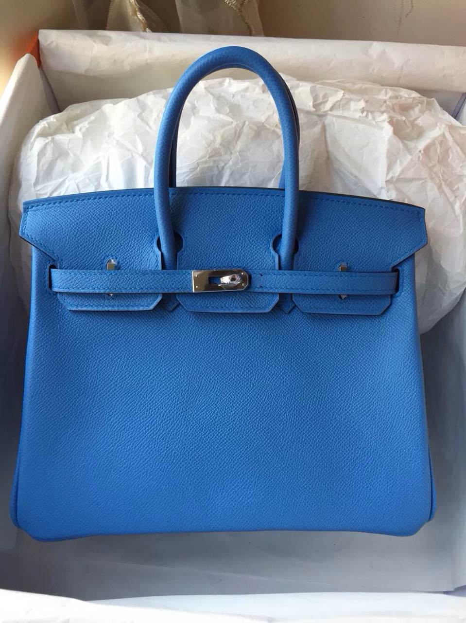 Brand: Hermes; Style: Birkin Bag; Material: epsom leather;Color:2T Blue Paradise; Hardware: gold/silver; Accessories: Padlock and keys, dust bag.Function:tote bag.