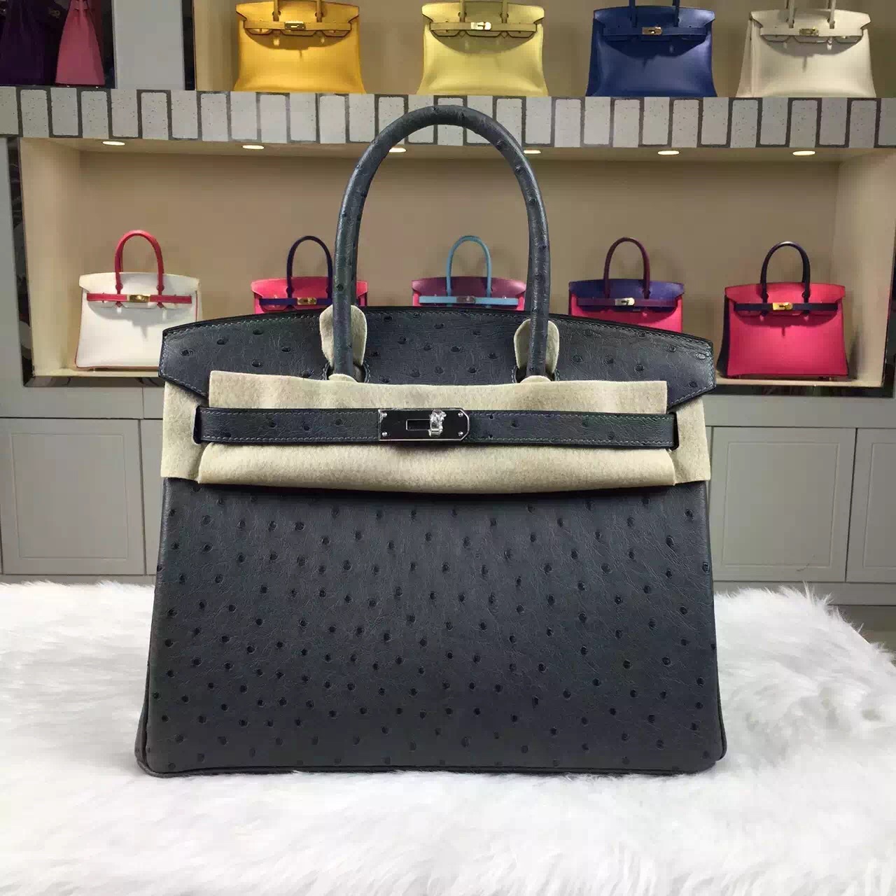Hand Stitching Hermes Etain Grey Ostrich Leather Birkin Bag 30CM