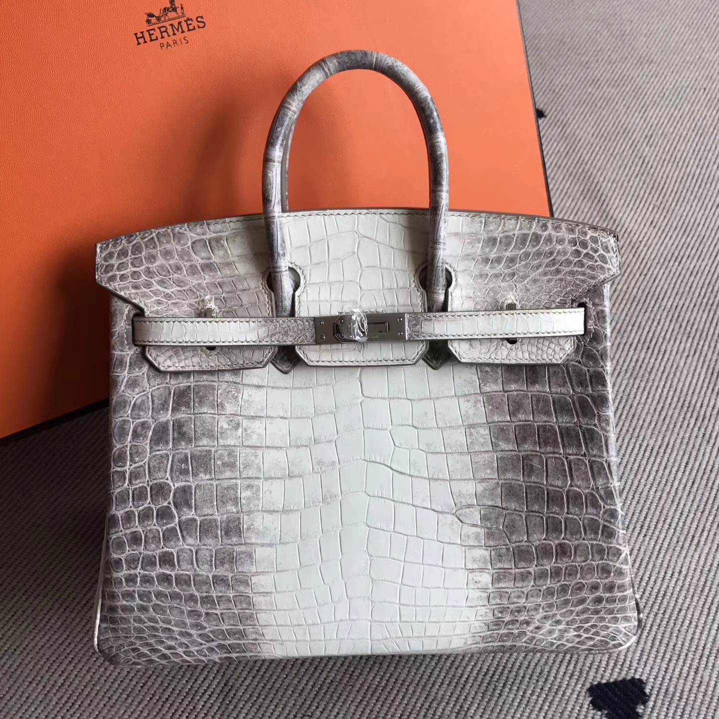 Brand: Hermes; Style: Birkin Bag; Material: Crocodile Leather;Color:Himalaya; Size:25cm; Hardware: Silver; Accessories: Padlock and Keys, Dust Bag.Function:Tote Bag.