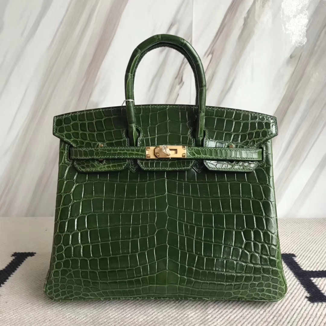 Hermes CK67 Vert Fonce Crocodile Shiny Birkin 25CM Bag Gold Hardware