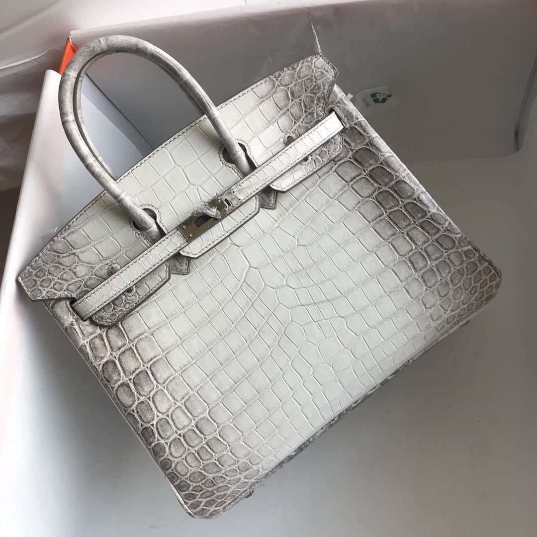 Brand: Hermes;Style:Birkin Bag;Material:Crocodile Leather;Color:Himalaya;Size:25cm;Hardware:Silver;Accessories: Padlock fand Keys, Dust Bag.Function:Tote Bag.