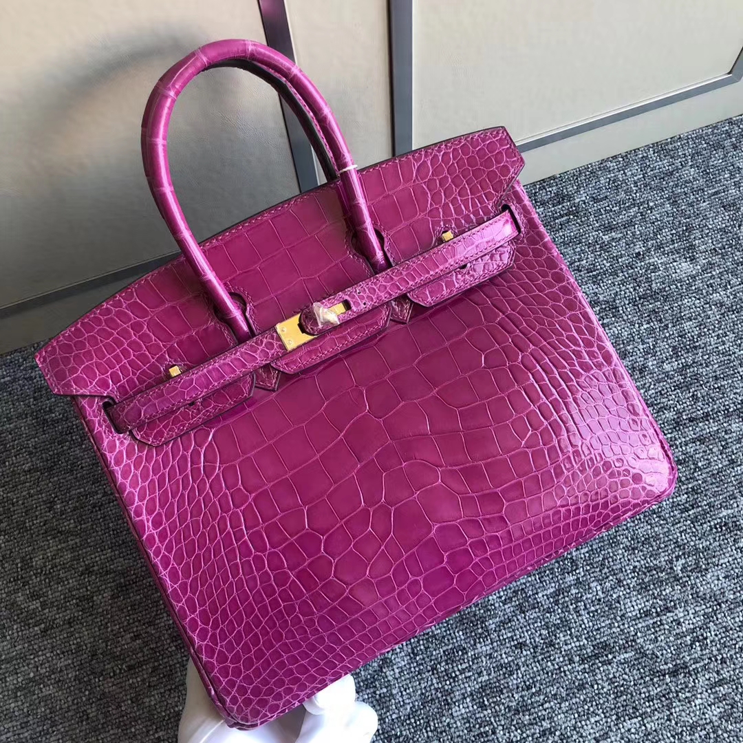Brand: Hermes; Style: Birkin Bag; Material:Shiny Alligator Crocodile Leather;Color:J5 Rose Scheherazade; Size:25cm; Hardware:Gold;Package:Complete Package;Function:Tote Bag.