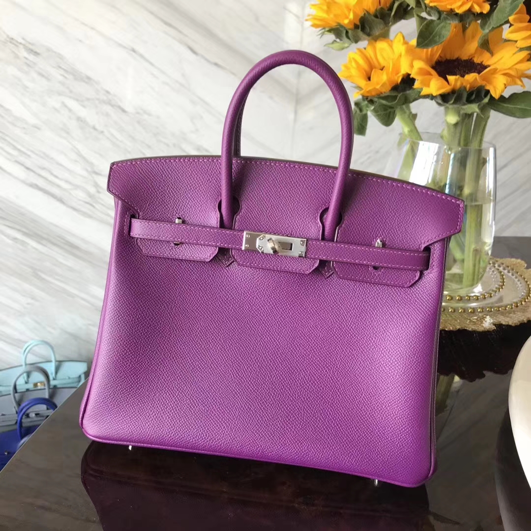 Brand: Hermes; Style: Birkin Bag; Material:Epsom Calfskin Leather;Color:P9 Amenone Purple; Size:25cm; Hardware:Gold/Silver;Accessories: Padlock fand Keys, Dust Bag.Function:Tote Bag.