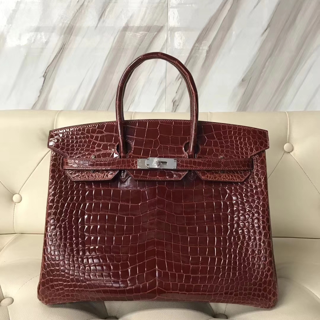 Brand: Hermes; Style: Birkin Bag; Material:Porosus Shiny Crocodile Leather;Color:CK31 Miel Brown; Size:35cm; Hardware:Silver;Accessories: Padlock fand Keys, Dust Bag.Function:Tote Bag.