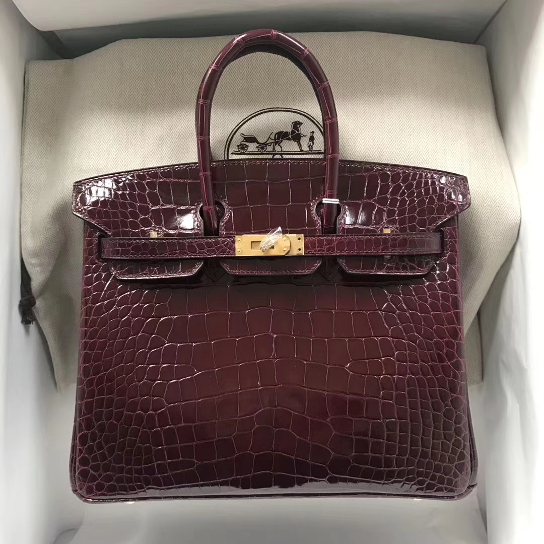 Brand: Hermes; Style: Birkin Bag; Material:Shiny Crocodile Leather;Color:CK57 Bordeaux; Size:25cm; Hardware:Gold/Silver;Package:Complete Package;Function:Tote Bag.