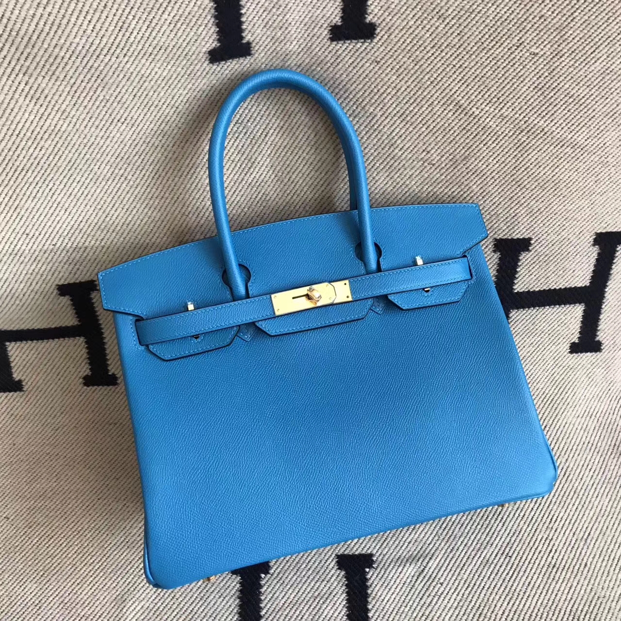 Brand: Hermes; Style: Birkin Bag ; Material: Epsom Calfskin Leather;Color:B3 Tanzania Blue ; Size:30cm;Hardware: silver/gold; Accessories: Padlock and keys,dust bag.Function:tote bag.