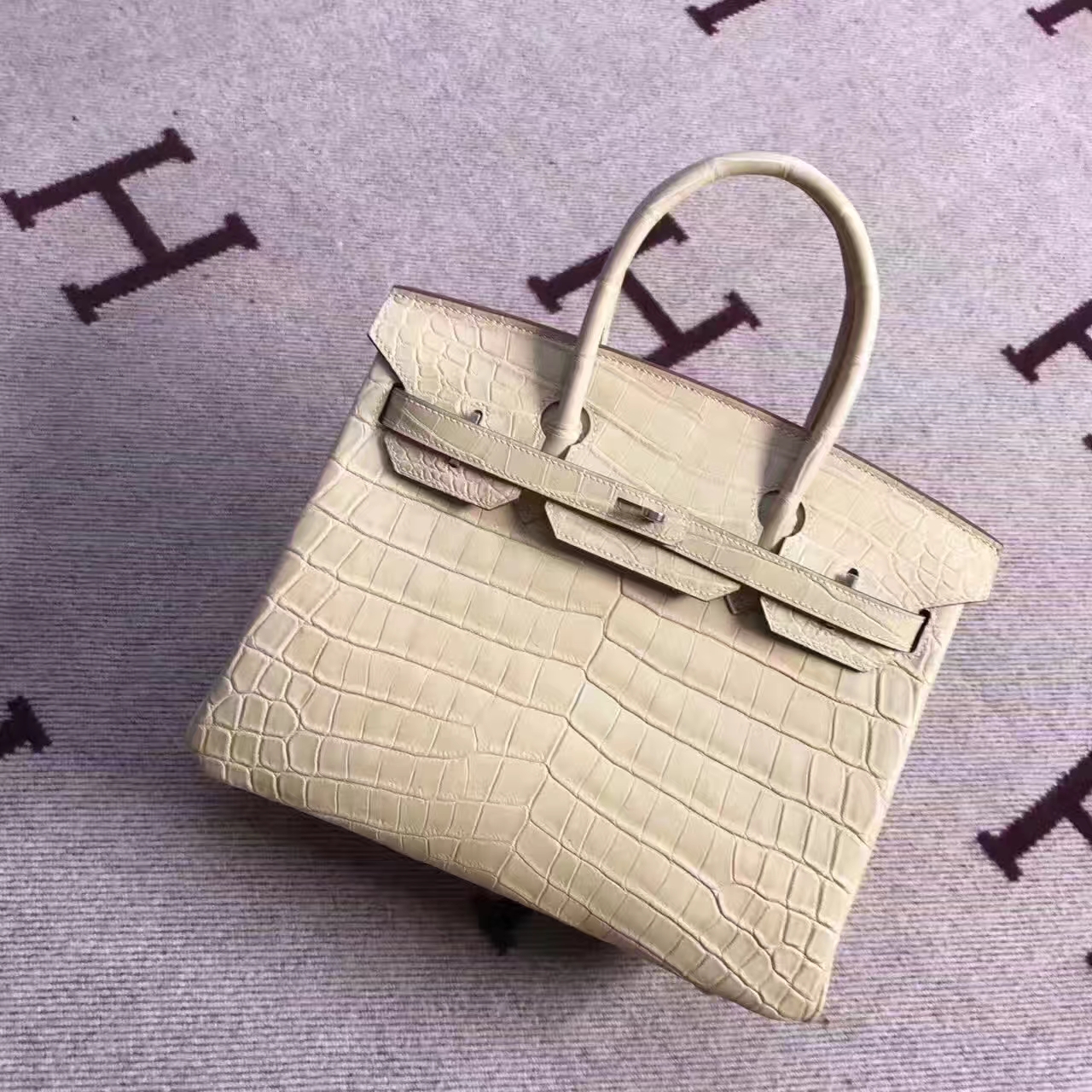 Hermes Milk Tea Color Crocodile Matt Birkin Bag 30cm