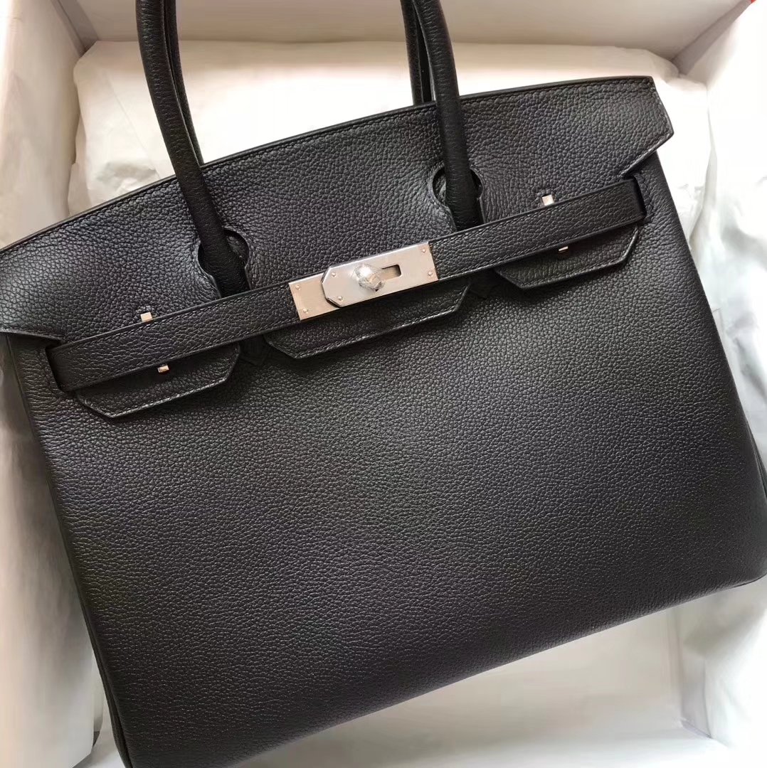 Brand: Hermes; Style: Birkin Bag; Material:Evecolor Calf Leather;Color:CK89 Black; Size:25cm; Hardware:Silver;Accessories: Padlock fand Keys, Dust Bag.Function:Tote Bag.