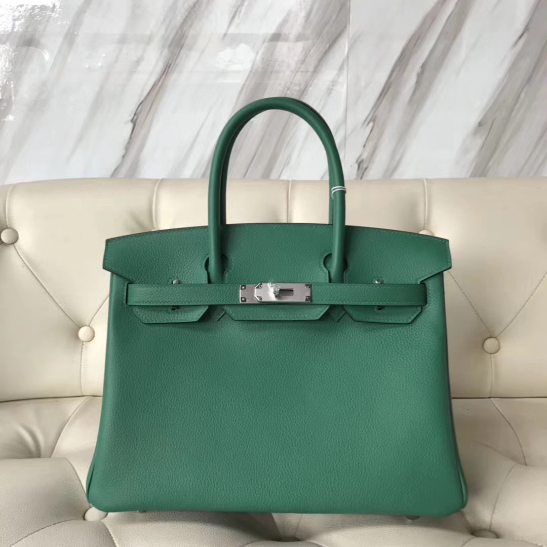 Brand: Hermes; Style: Birkin Bag; Material:Togo Calf Leather;Color:U4 Vert Verigo,Winter New Color; Size:30cm; Hardware:Silver;Accessories: Padlock fand Keys, Dust Bag.Function:Tote Bag.