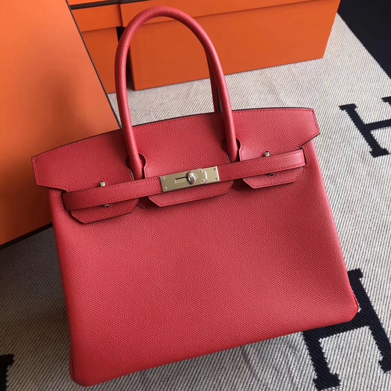 Brand: Hermes; Style: Birkin Bag; Material: Epsom Calfskin Leather;Color:T5 Peach Pink; Size:30cm; Hardware: Silver; Accessories: Padlock and keys, dust bag.Function:tote bag.