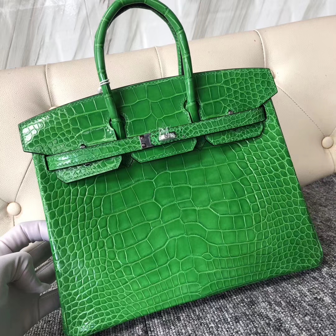 Hermes 1L Vert Cacti Shiny Crocodile Birkin Bag 25CM Silver Hardware