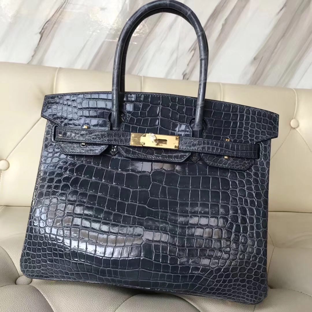 Brand: Hermes; Style: Birkin Bag; Material:Shiny Porosus Crocodile Leather;Color:N7 Blue Tempete; Size:30cm; Hardware:Gold;Accessories: Padlock fand Keys, Dust Bag.Function:Tote Bag.