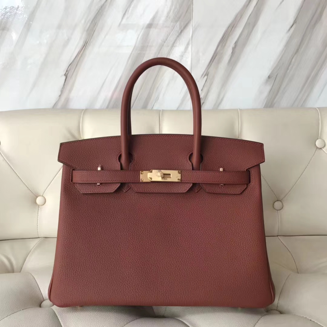 Brand: Hermes; Style: Birkin Bag; Material:Togo Calf Leather;Color:6C Cuivre Color; Size:30cm; Hardware:Gold;Accessories: Padlock fand Keys, Dust Bag.Function:Tote Bag.