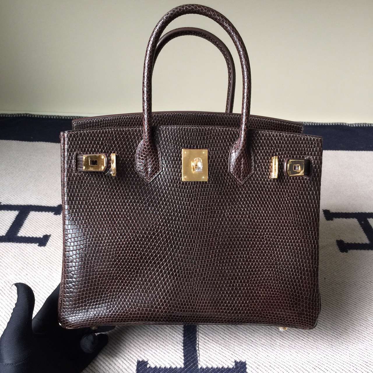 Womens Handbag Hermes Chocolate Lizard Leather Birkin Bag 30cm