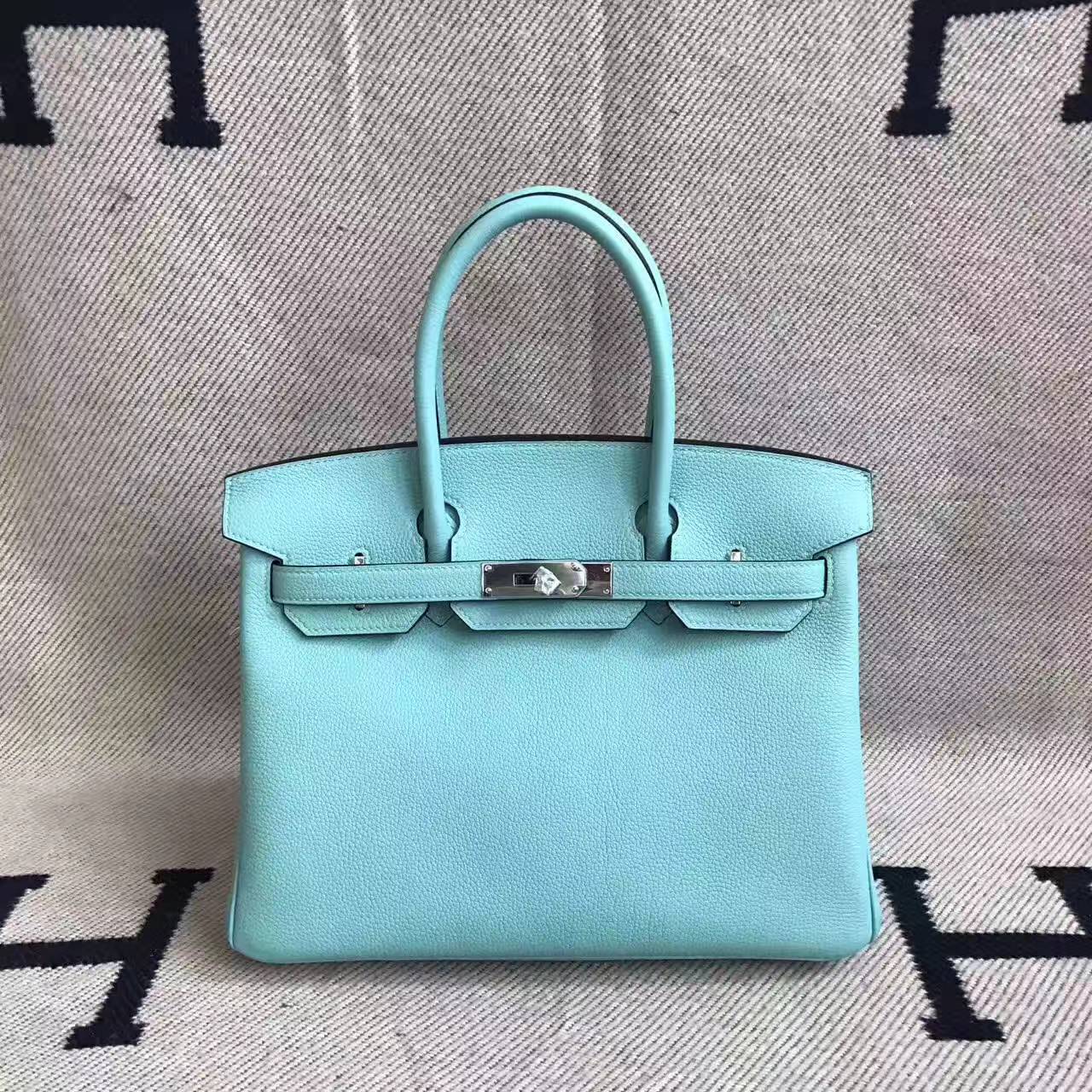 Brand: Hermes; Style: Birkin Bag 30cm; Material: Togo Calf Leather;Color: 3P Blue Attol ; Hardware: silver/gold; Accessories: Padlock and keys,dust bag.Function:tote bag.