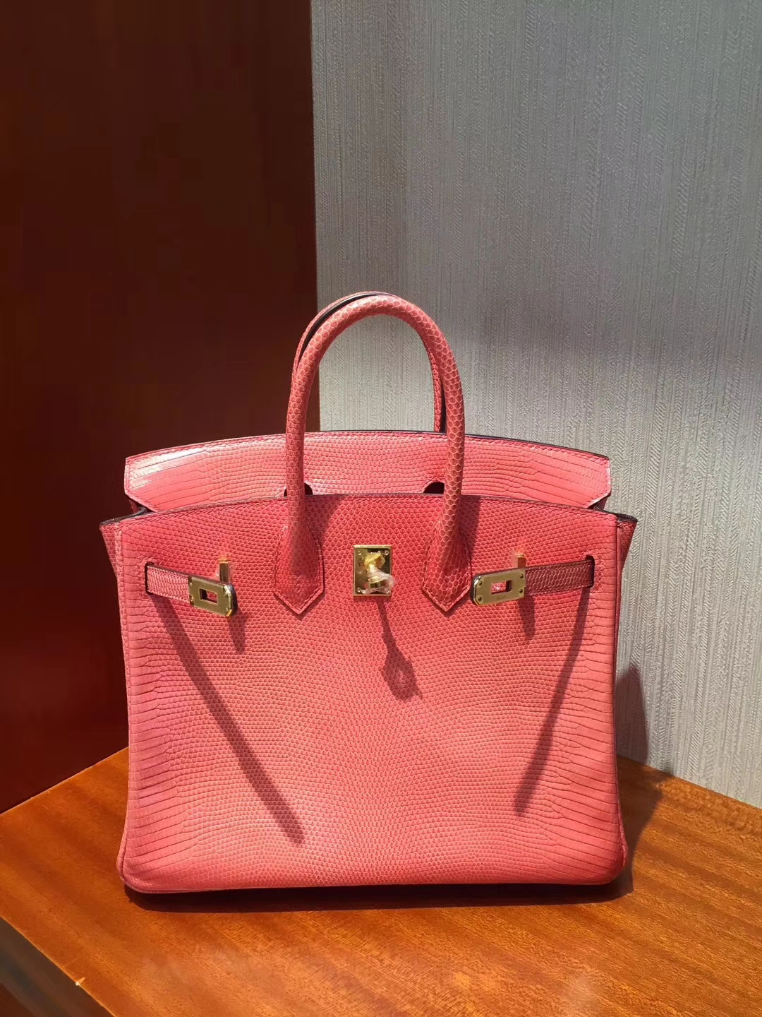 Brand: Hermes; Style: Birkin Bag; Material: Lizard Skin Leather;Color: 8W Rose Lipstick; Size:25cm; Hardware: Gold;Accessories: Padlock fand Keys, Dust Bag.Function:Tote Bag.