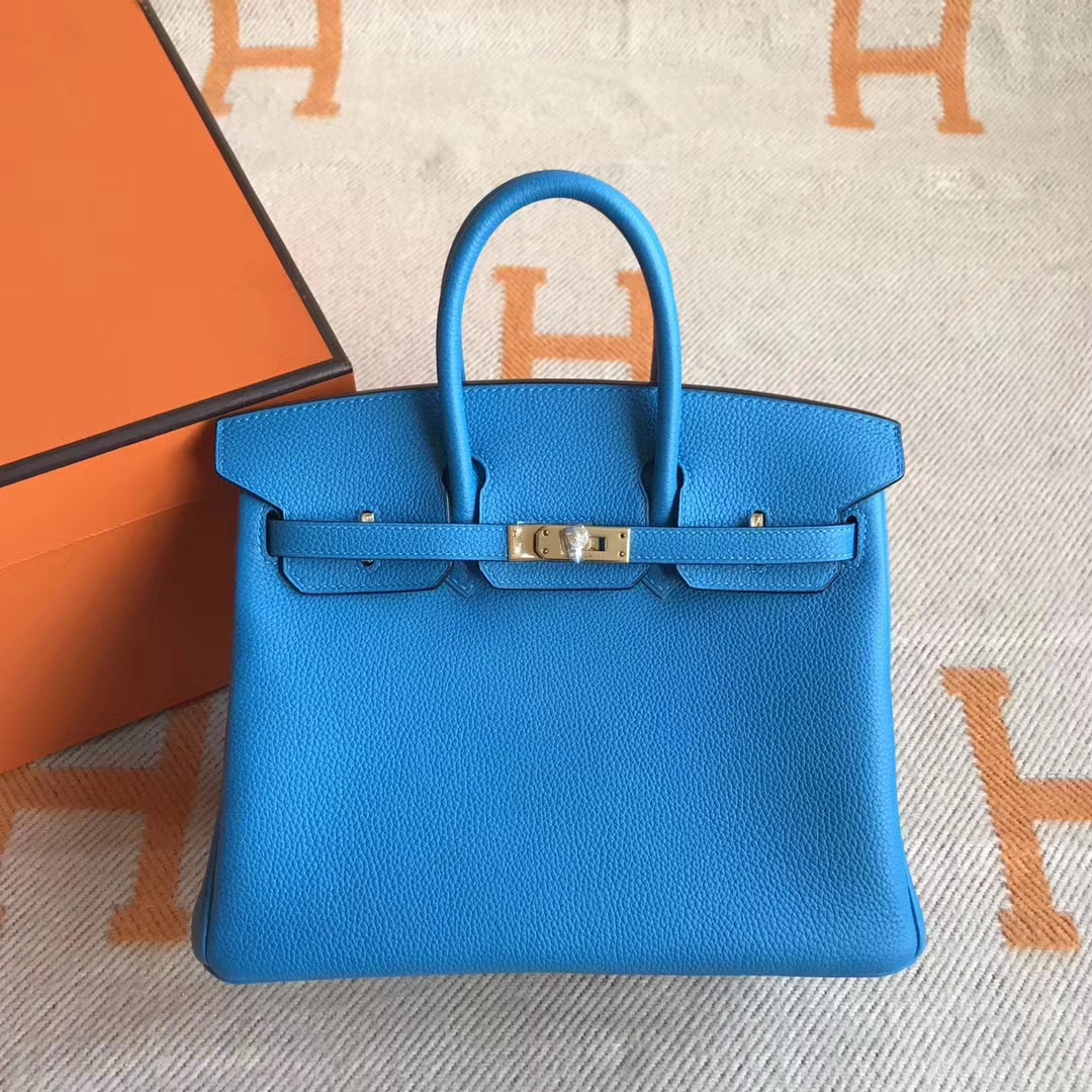 Brand: Hermes; Style: Birkin Bag; Material: Togo Calfskin Leather;Color: B3 Blue Zanzibar; Size:25cm; Hardware: Gold; Accessories: Padlock and Keys, Dust Bag.Function:Tote Bag.