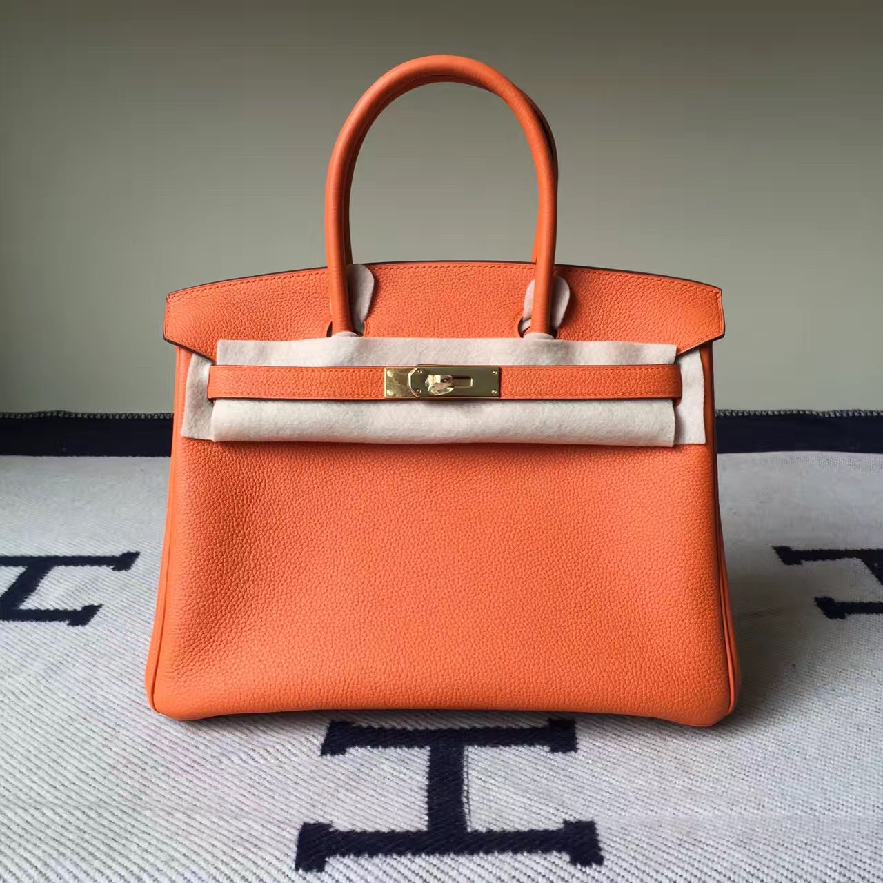 Brand: Hermes; Style: Birkin Bag 30cm; Material: Togo Leather ;Color: Classic Orange; Hardware: silver/gold; Accessories: Padlock and keys,dust bag.Function:tote bag.