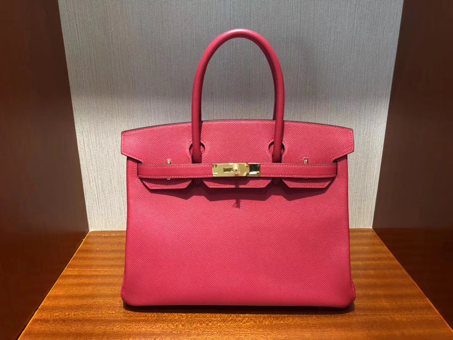 Brand: Hermes; Style: Birkin Bag; Material:Epsom Calf Leather;Color:I6 Rose Extreme; Size:30cm; Hardware:Gold;Accessories: Padlock fand Keys, Dust Bag.Function:Tote Bag.