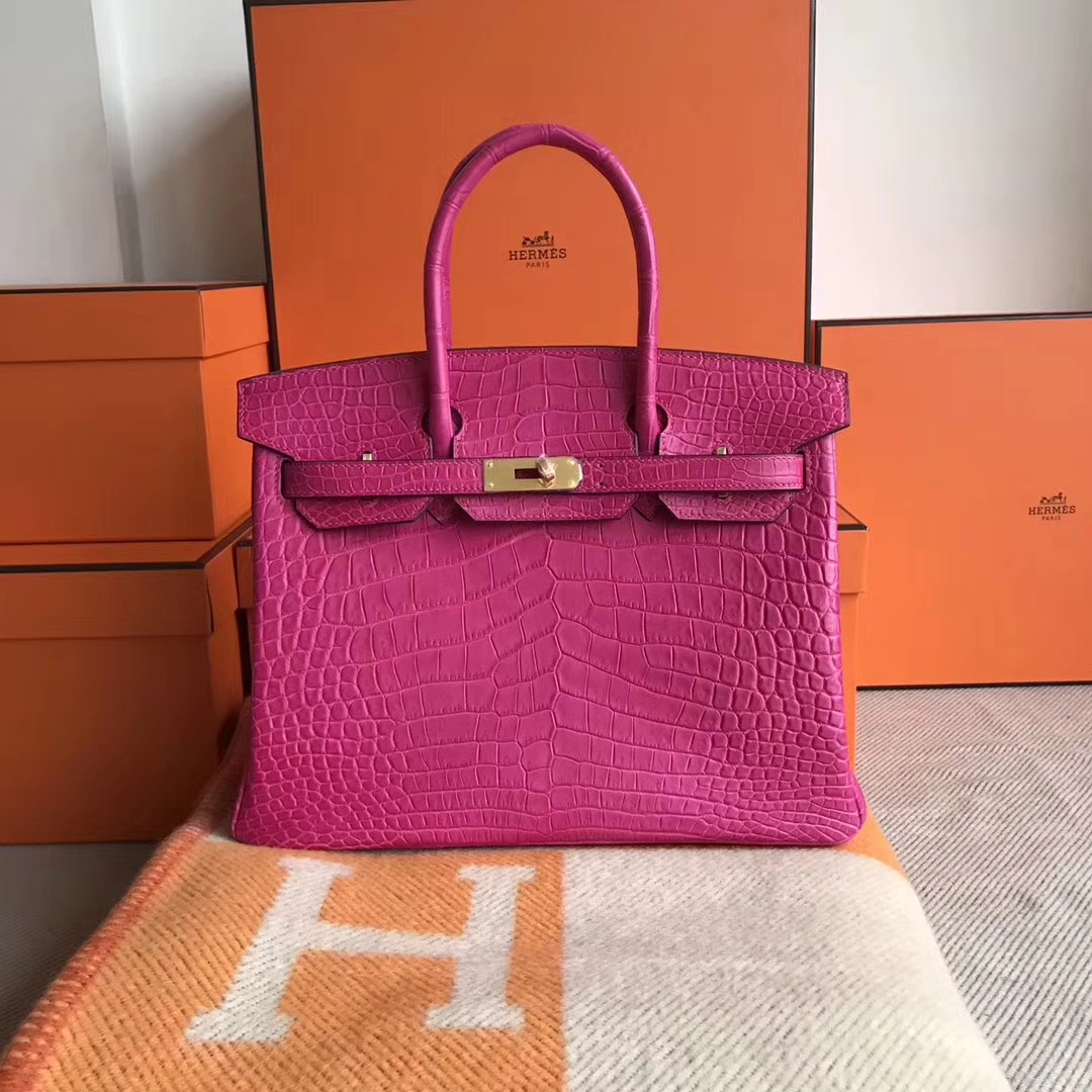Brand: Hermes; Style: Birkin Bag; Material:Matt Crocodile Leather;Color:Peach Pink; Size:30cm; Hardware:Gold;Accessories: Padlock fand Keys, Dust Bag.Function:Tote Bag.