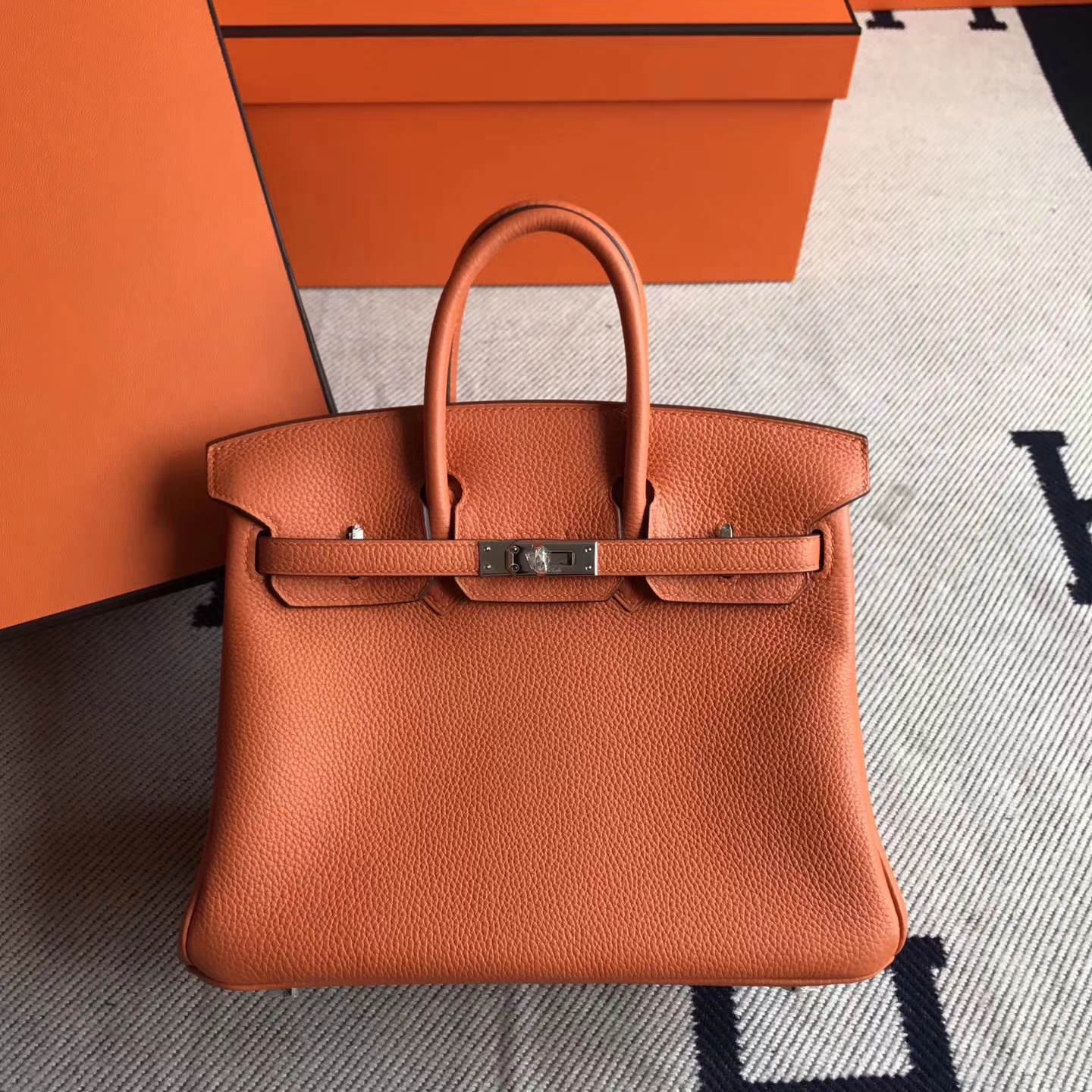 Hermes Togo Calfskin Birkin 25cm Bag in 93 Orange Silver Hardware