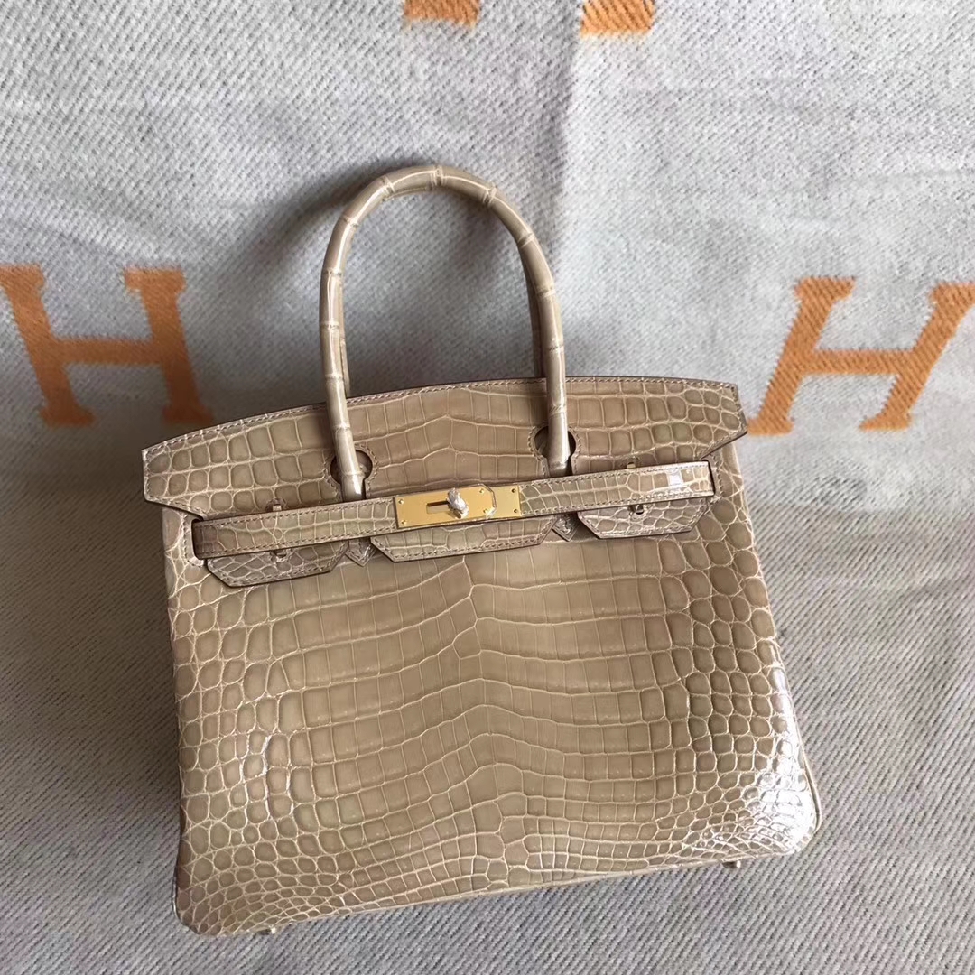 Hermes Milk Tea Color Shiny Crocodile Leather Birkin 30cm Bag