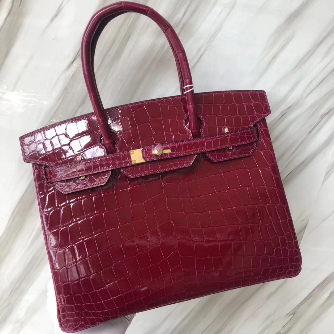 Brand: Hermes; Style: Birkin Bag; Material:Shiny Crocodile Leather;Color:N5 Cassis Purple; Size:30cm; Hardware:Gold;Package:Complete Package;Function:Tote Bag.