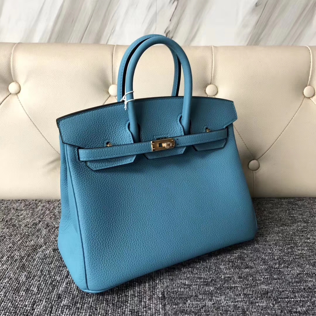 Hermes Togo Calf Birkin 25CM Tote Bag in P3 Bleu Du Nord Gold Hardware