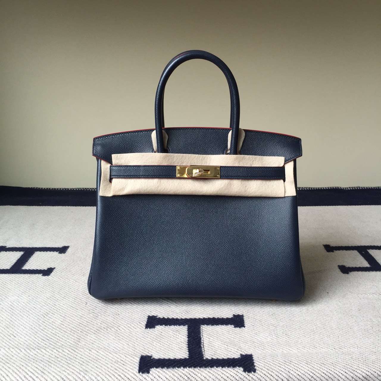 Brand: Hermes; Style: Birkin Bag 30cm; Material: Epsom Calfskin Leather;Color: 7K Blue Saphir/Red Rim; Hardware: silver/gold; Accessories: Padlock and keys,dust bag.Function:tote bag.